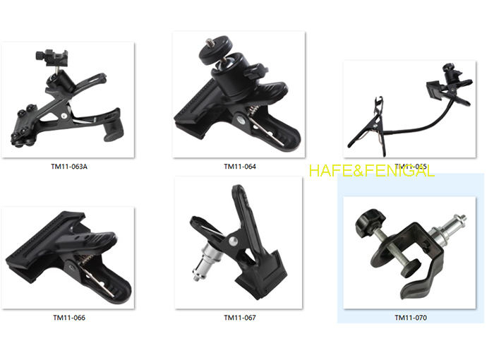Parametri chiave: profili di peso compresi tra 0,08 kg (clampe compatte) e 0,44 kg (clampe pesanti) (ottimizzando la portabilità/stabilità); caratteristiche specializzate (giunzioni girevoli, teste a sfera, ricevitori di scarpe calde),I meccanismi a molla) aggiungono flessibilità funzionale.