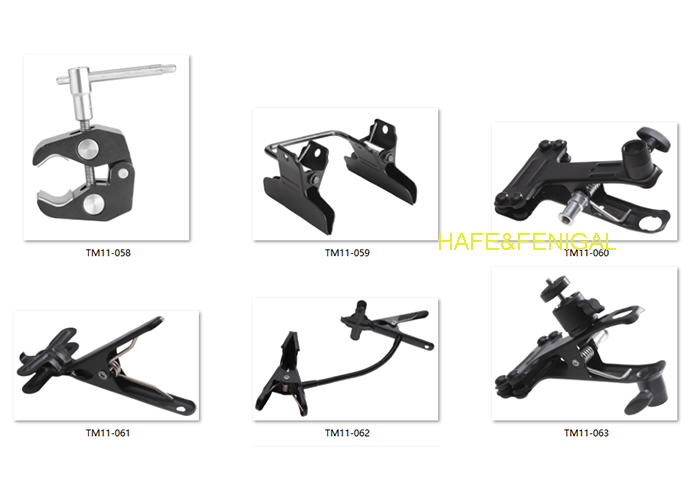 | TM11-060 | Grandi pinze | 5/8 ∆ ricevitore; 3/8 ∆-16 filo femminile | Materiale plastico ingegneristico + metallo (viti, molle) | Nero | Montaggio dell'attrezzatura fotografica; apparecchiatura di montaggio per apparecchiature di montaggio | Peso: 0.25■ grande design di clip; filo femminile da 3/8 ∼ 16 |