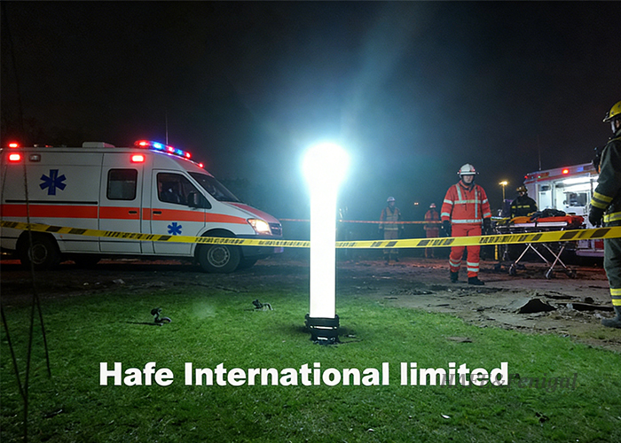 Installazione semplice e rapida di colonne gonfiabili per l'illuminazione di ampie aree